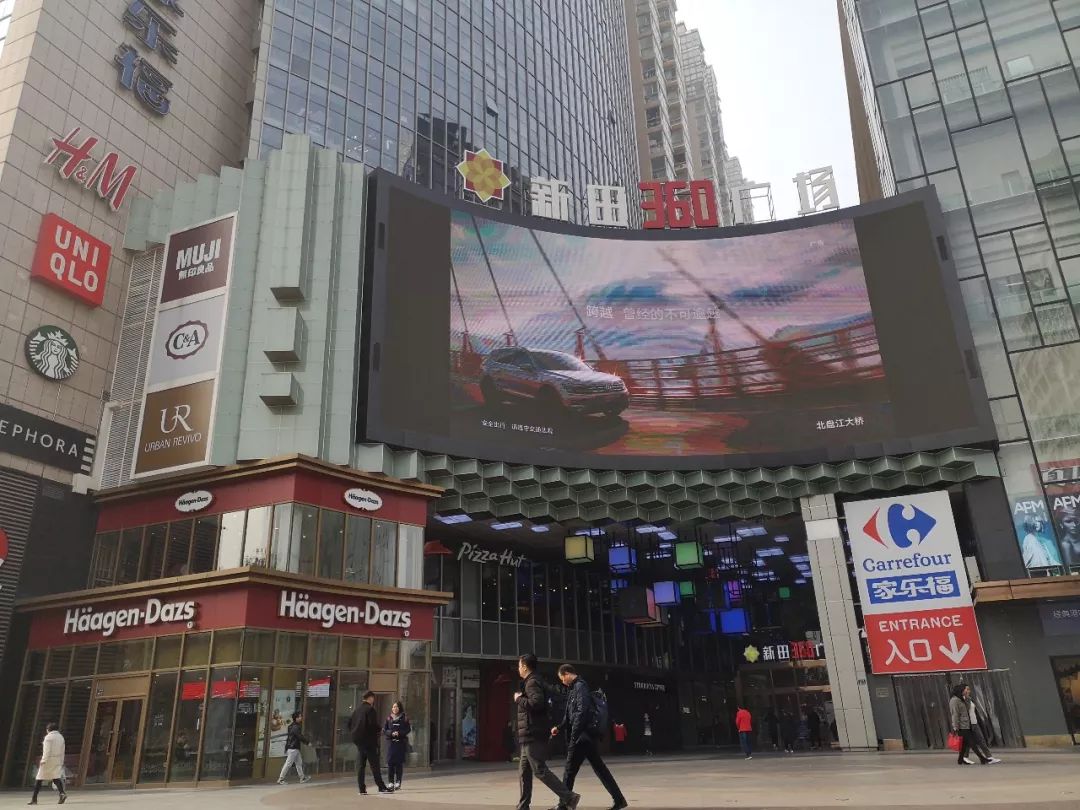 花园路商业”新军“正弘城在外侧线条上有着明显的工业风格,外观偏向国际化,其类似于香港的商业街道。