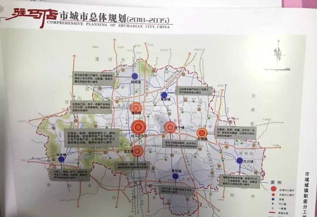 北部城镇发展区 :位于中心城市组团集群北部,主要以沿京广铁路、京港澳高速公路、107国道等为纽带,包括西平县和上蔡县,主要发展农副产品加工、粮食生产、纺织、医药化工等产业。