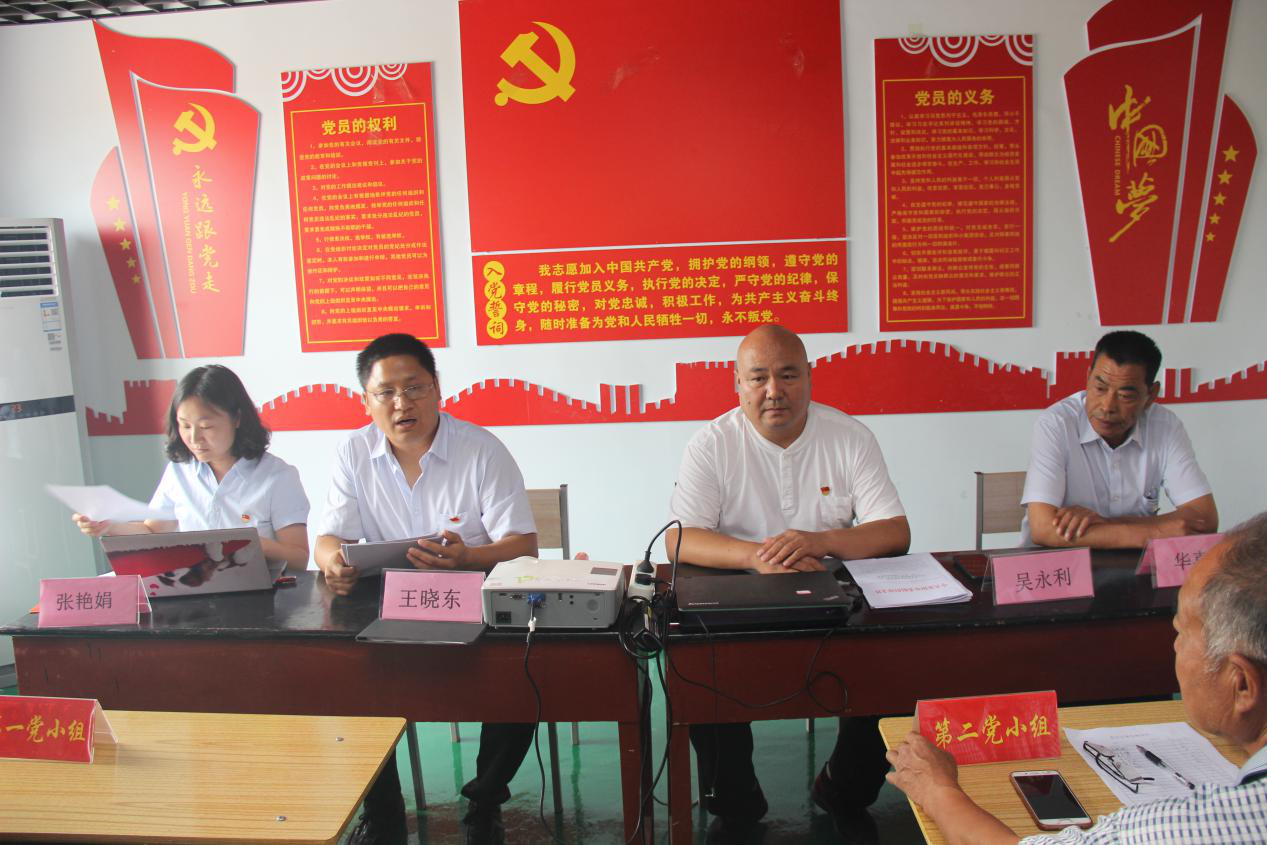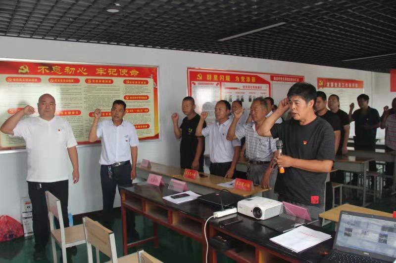 大会上,由当天过政治生日的柴建伟党员领誓,全体党员重温入党誓词,支部书记吴永利汇报了支部上半年的工作以及下半年计划和重点,驻村第一书记王晓东传达学习在基层党组织中开展“强基提质”、“五星支部”创建 、“党员积分管理”等文件精神,对党员“三亮一比”、“一编三定”、学习强国等工作进行推进;由第三党小组组长尹向峰进行“不忘初心牢记使命”为主题的党课分享;课后就党建知识采取知识问答的形式进一步提高党课学习效果。