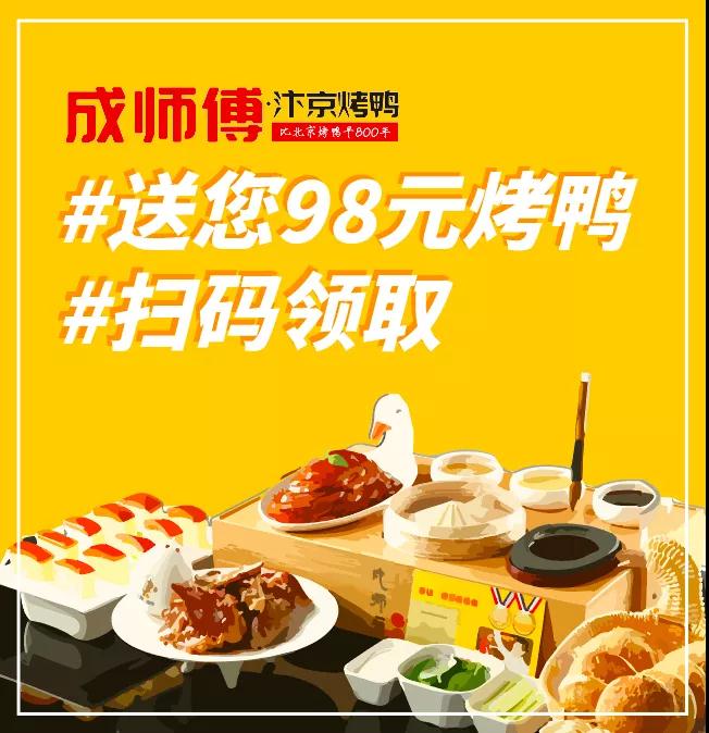 8月30日恢复堂食!即日起,成师傅汴京烤鸭更推出“秋天的第一只烤鸭免费”活动,市民、网友扫描下方二维码,即可免费领取价值98元的成师傅汴京烤鸭半只(含葱丝、蘸酱、瓜条),使用时间:2021年8月30日-2021年9月30日,亲测有效,先到先得。