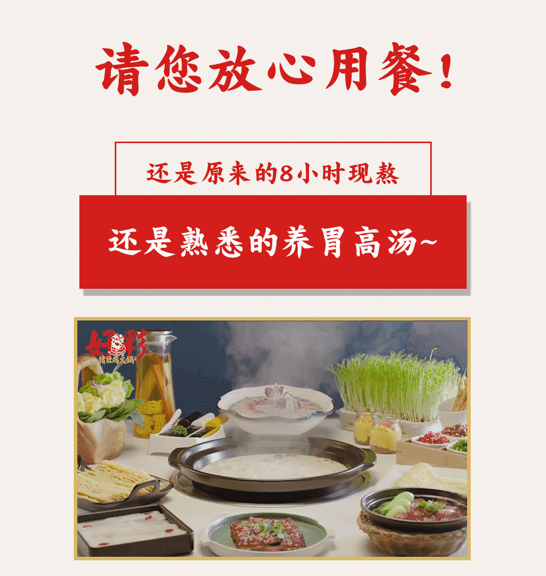 8月29日起,郑州市区10家连锁门店陆续恢复堂食,且好彩猪肚鸡郑重承诺,堂食开放期间,全体员工合格持证上岗、门店全面检查到位、内部进行多次消杀、保障食品安全新鲜。