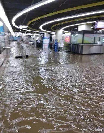 调查组认为:神舟路站在建出入口施工区域位于局部地势最低点,由于短时强降雨及排水管被封堵造成地表大量积水,积水冲垮Ⅳ号出入 口防护墙后涌入基坑,冲垮基坑与站厅之间隔离墙的上部砖墙后, 流入地铁站站厅,最终导致地铁站厅被淹。