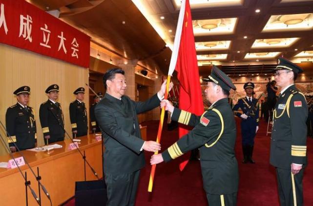 上午10时,成立大会开始,官兵整齐列队,全场高唱国歌。仪仗礼兵护卫着军旗,正步行进到主席台前。习近平逐一将军旗授予武汉联勤保障基地司令员李士生、政治委员殷志红和无锡、桂林、西宁、沈阳、郑州联勤保障中心主任、政治委员。武汉联勤保障基地和各联勤保障中心主要领导精神抖擞,向习近平敬礼,从习近平手中接过军旗,持旗肃立。全体官兵向军旗庄严敬礼。